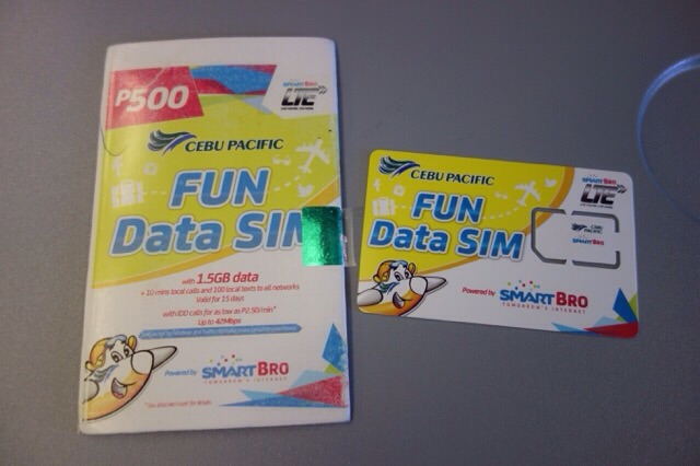 セブパシフィック機内で、カラフルデザインのSIMカードを買いました。なんと、500ペソ!