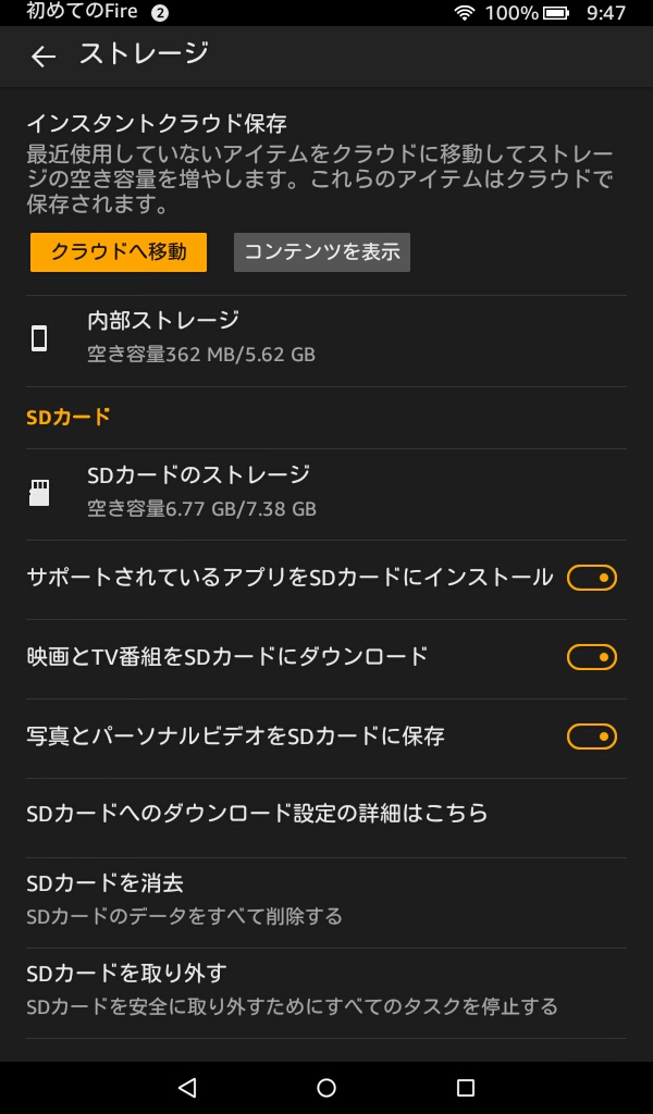 設定にも「アプリをSDカードにインストール」というオン・オフのスイッチ項目があるので、今後インストールするアプリは、勝手にメモリーカードに入ってくれるのかな。