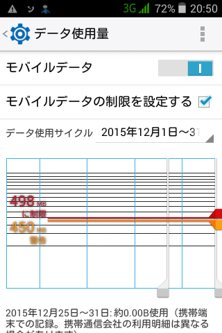 そして、端末標準の通信料を制限する機能を使ってみる。