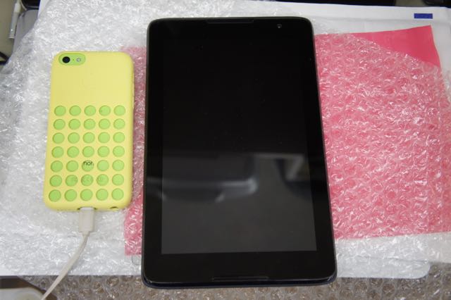 特にベゼルが細いわけでもないので、ギリギリ片手で持てるくらい。ここの所手の平タブレットは『fire』くらいだったので、画面の繊細さとくっきりな表示に感心します。