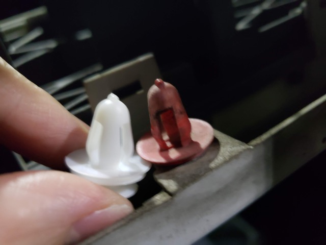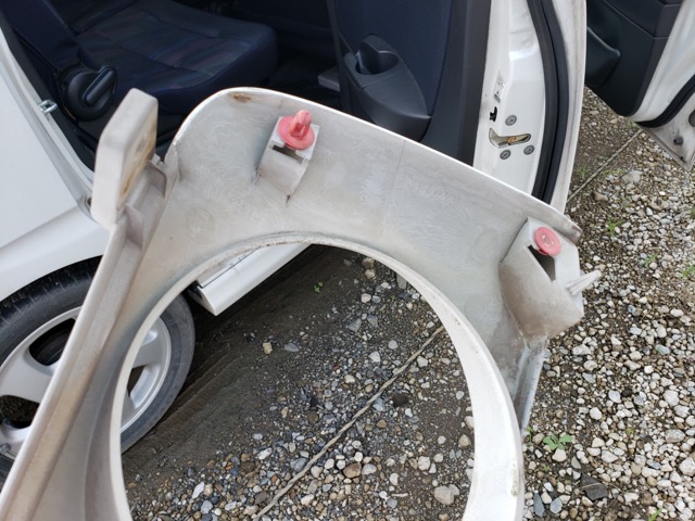 そしてバキッとグリルを前方に引き抜く、、、あ、クリップ折れてました。以前に誰かが折っていたようです(笑)。