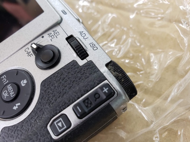 レンズシャッターの縁に嫌な汚れが。そしてダイヤルにもこってりとした付着物があります。未清掃での販売なんですね。
