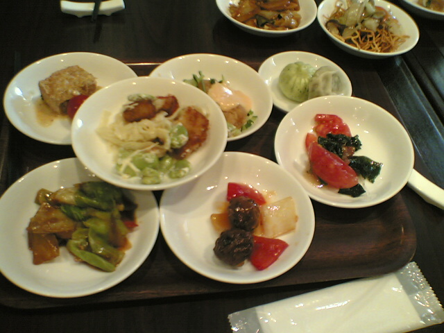まあいつもの通り、トレイ一杯に小皿を載せて、めぼしい料理をテーブルに並べます。