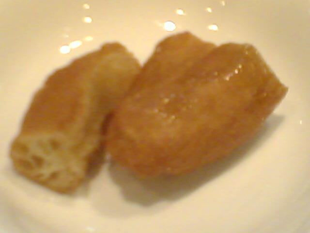 一番好きなメニューは、この「はちみつ揚げパン」(接写用レンズ忘れ=ピンぼけ)。