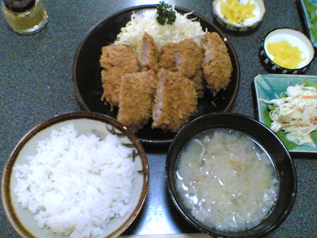 実は、彼女の「ロースかつ」も半分食べてしまっています(笑)。だって、「もうお腹一杯。食べ切れない、、、。」なんてもったいない事言うんですもの。