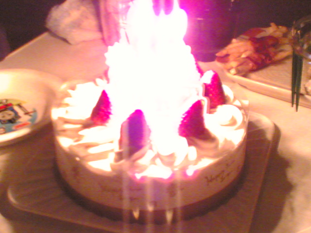 携帯カメラだと、まるでキャンプファイヤーのように見えてますが(笑)、燃え上がったわけではありません。