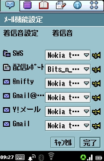 作業自体は、インストールして、「メール」の「ユーザ設定」から着信音を設定するだけです(苦笑)。