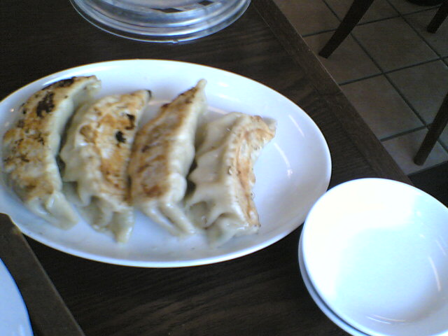 一緒に看板メニューの「ジャンボ餃子」も。かなりニンニク臭いです(笑)。