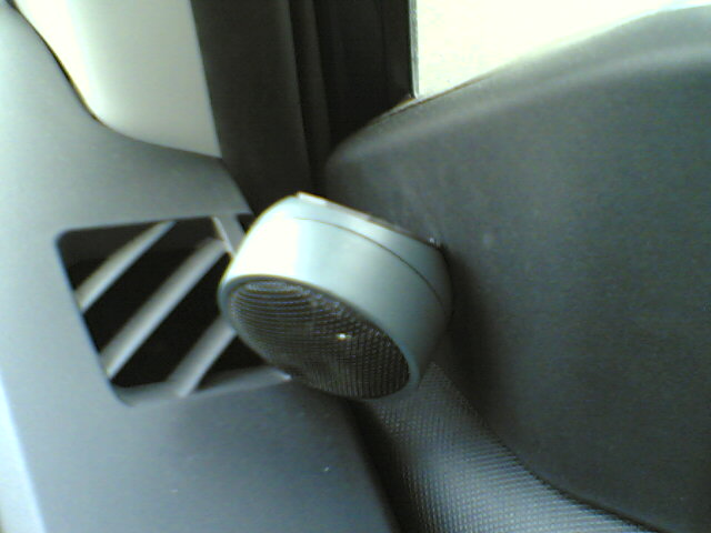 だいぶ前に、一流メーカーの両面テープで貼り直したツィーターですが、朝出ようと乗り込むと、、、ぶら下がってました(苦笑)。