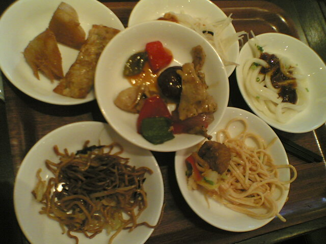 トレーへの小皿の配置は既に手慣れたもの(笑)。こうしてテーブルに並べてから食べるのが、“快感”です。