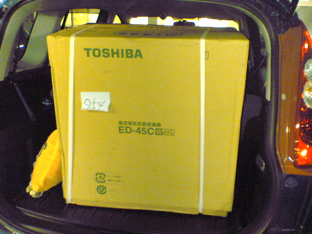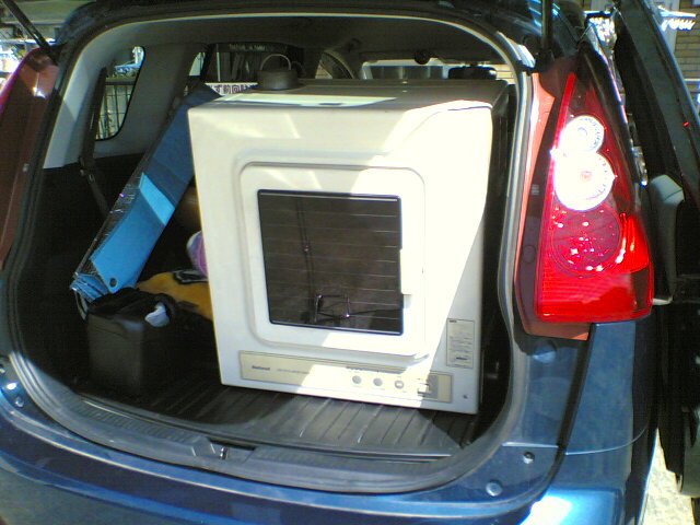 画像は引き取りをお願いする壊れたガス衣類乾燥機と、それと引き換えに積み込んだ電気衣類乾燥機。