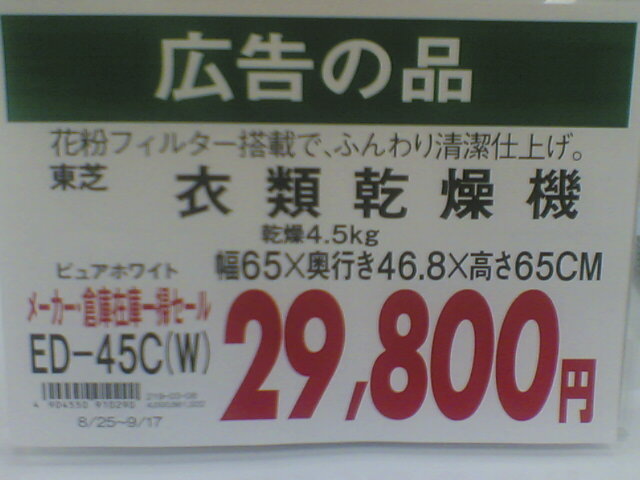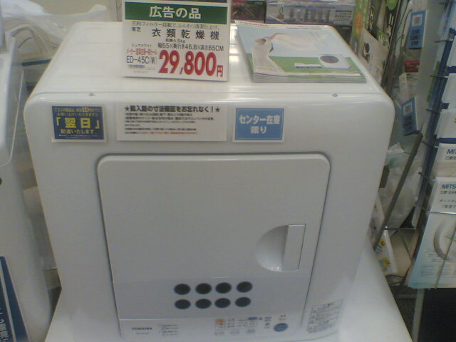東芝の衣類乾燥機『ED-45C』、、、って、ペットネームは何にもないんですね(苦笑)。