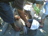 「お豆腐屋さんが来たよ」というので、ラッパを吹きながら自転車で来るのを想像しつつ外に出ると、バケツ(?)を肩に担いだ、こんな人でした。