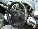 取り付けてみたところ、なんだかユルイ。どうやら、インプレッサよりも、ステアリング径が一回り小さいようです。まあ、“ウケ狙い”の100円アイテムなので、困る事もないのですが(笑)。