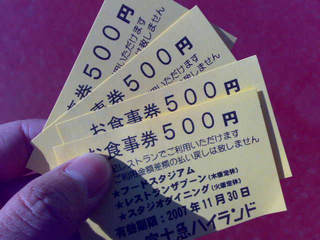 乗り物は幼児向けの物に限られますが、コストパフォーマンスは抜群! 画像のような、500円の食事券まで付いてきちゃいます! って、渡されるまで知りませんでした(笑)。