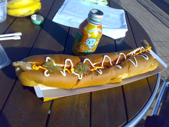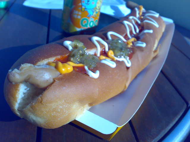 本当は、4人で仲良くかぶりつこうと思っていたのですが、赤いソースの正体がチリソース(小辛)と分かり断念。せっかく「ピクルスは半分だけ」とお願いしたのに、残念。