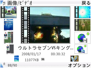変換したファイルを、メモリーカードの「Videosフォルダ」(他の場所でも認識するのかな?)に突っ込めば、上の写真のように「ギャラリー:画像/ビデオ」に一覧表示されます。