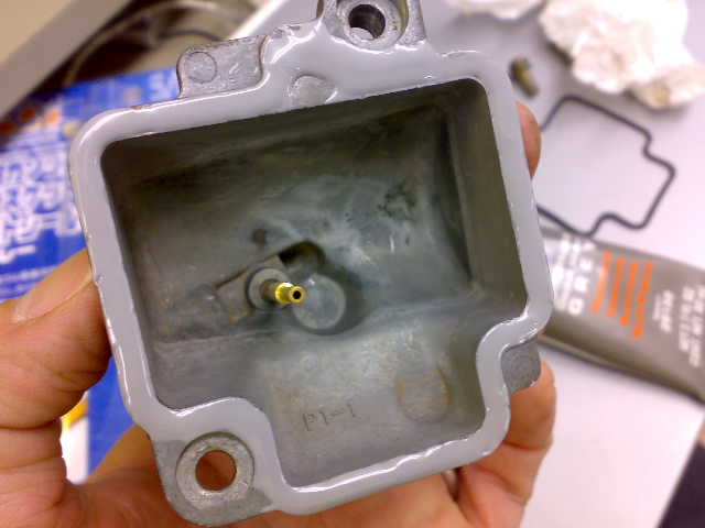 深夜に屋内へ運び込み、既にガソリンの抜け切ったキャブレターを外して検証。