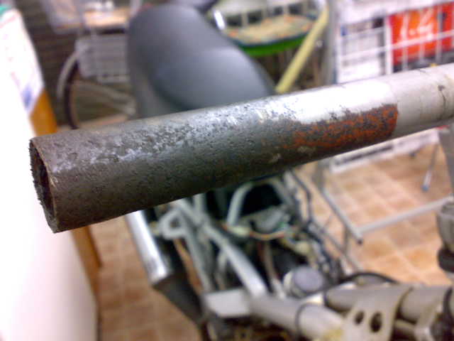 グリップエンドを外して、スイッチボックス、アクセルグリップを外してみると、、、もの凄い錆!