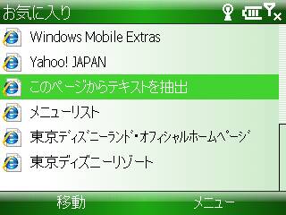 お気に入りに入れられた『IETips_001』=「このページからテキストを抽出」を呼び出すと、
