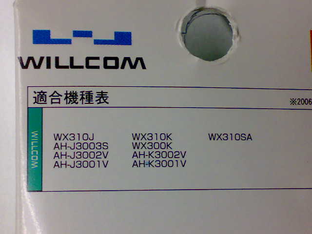 「対応機種>WILLCOM」に目が止まり、「お、100円で携帯の周辺機器が!」と、とりあえず買ってみました(笑)。