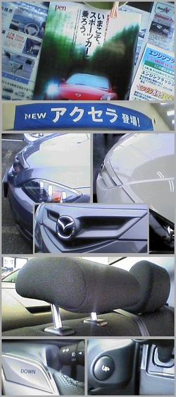 「NEW アクセラ 登場!」と、店内展示車両はセダン。「ココの売れ筋はセダンか?」と思いつつ、シートの座り心地を確認し、「あー、やっぱりコッチの方がイイなぁ〜。」と“欲”をかき立てられてしまいます(笑)。