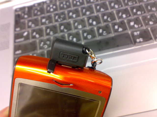 先日お届けされたイヤホンコネクタがストラップ式になっていたので、取り付けをしてみました。