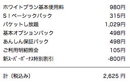 でも、ホワイトプランで利用するとして、この計算式から498円の二つ(あ、利用明細の105円も)を省いてしまえば、「1524円」からこの高機能端末が持ててしまいます。
