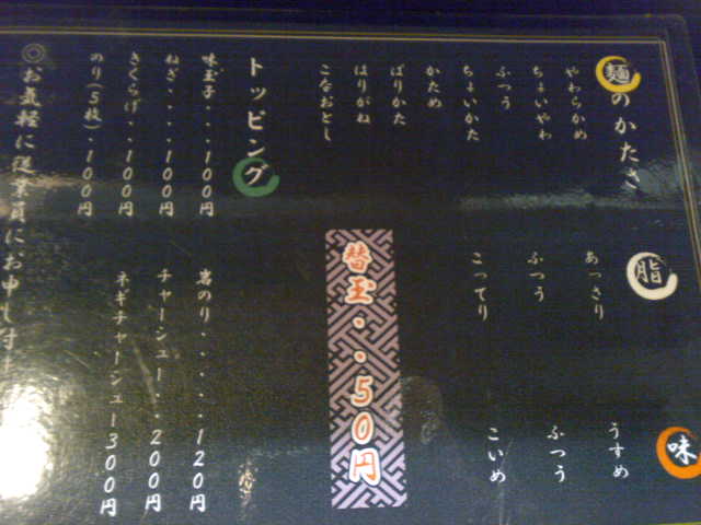 個人的には“半ラーメン”といった感じ。これは次回から替え玉必須(!)ですね。券売機にあったのはその為か(笑)。