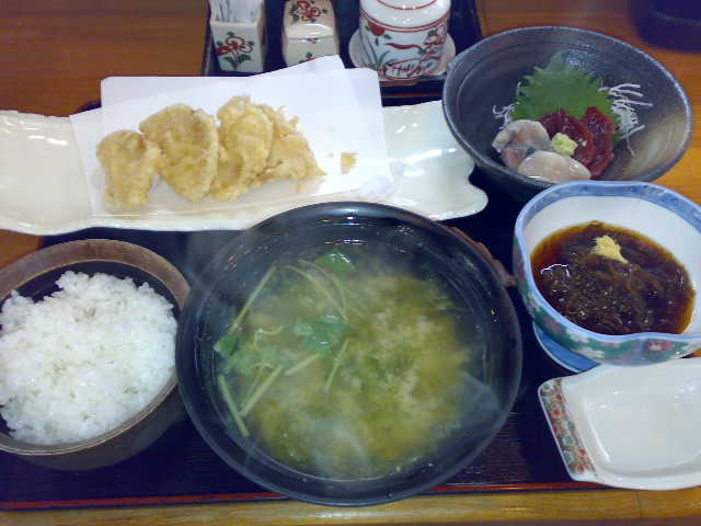 味噌汁の器の陰になってしまい写ってくれませんでしたが、“お新香”になっていた食べなれない野菜がありました。不思議な味わいに、「コレ、何ですか?」と聞いてみると、“うど”だそうです。