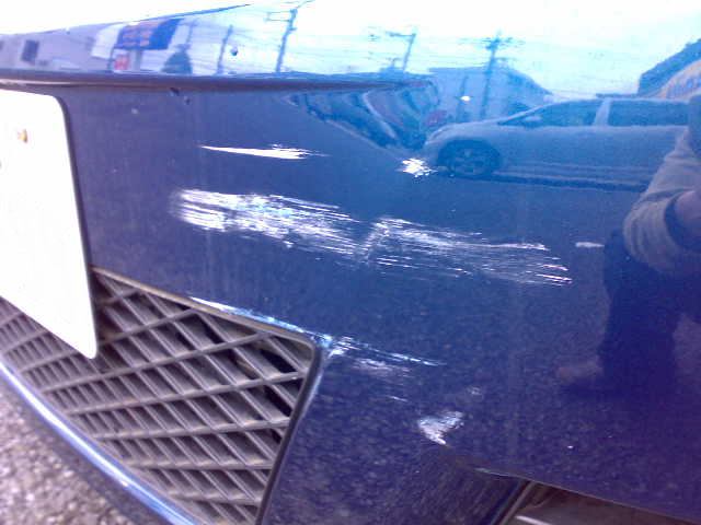 頭を振らずに、真っすぐの状態からいきなり駐車を始めたので、車間を詰めてはいなかったものの「このまま鼻が当たっちゃったり」と思いはしましたが、まさか本当に当てるとは(困)。