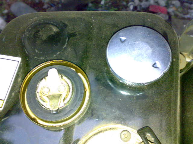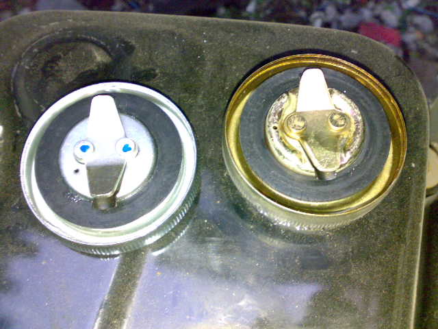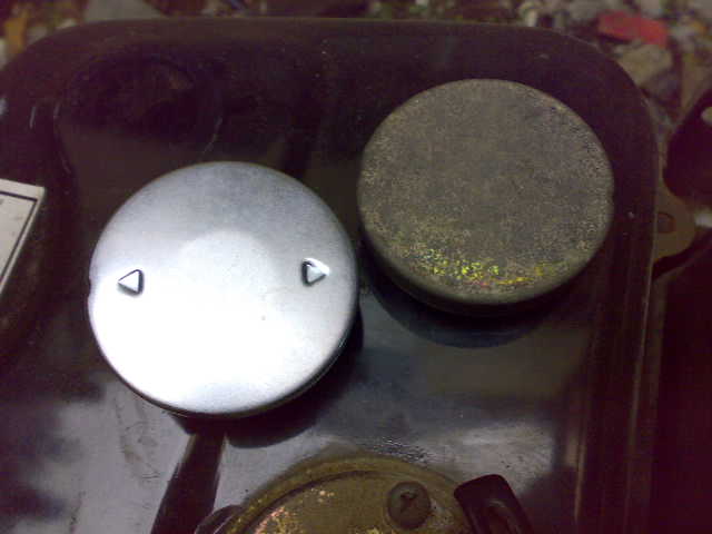 画像左側は、やっぱりガソリン漏れをサポートしていた(笑)、ガソリンタンクキャップ。こちらも内側のゴムパッキンが劣化していて亀裂が入っていた為、給油口周辺にガソリンがにじんでいたのでした。
