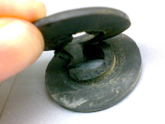 ただのゴムブッシュなのですが、カウルを差し込む部分なのです。すでに使い物にはなりません、、、コレが無いと、フレームだけの惨めな姿で走らなくちゃなりません(困)。