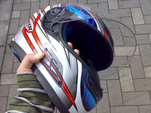 買ったのはMサイズのMHRヘルメットなのですが、やはりアライヘルメットSサイズの私の頭にはちょっと大きいようです。