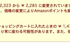 「あ、コレ安くてイイなっ!」とお買い得なモノを見つけると、「とりあえず入れておいて、後で買おう」と思ってショッピングカートに置いておくのですが、数日後に「入れておいたモノを注文しようっと♪」とカートを確認してみると、「た、高くなってるぅーっ!」なんて事がよくあります(笑)。