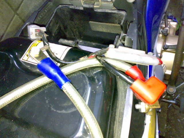 しかし、ケーブルがものすごく太い(苦笑)。バイクのバッテリーケーブル(というより線)の数倍太いです。これは、取り回しが大変そう、、、。