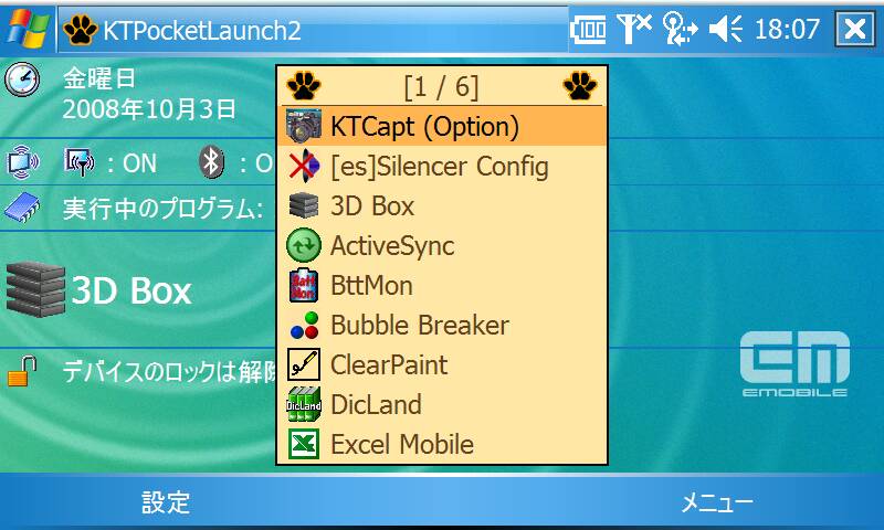 EM・ONEのアプリケーション情報をみていると、X02HTで重宝しているアプリケーションランチャー、『KtPocketlaunch2』を入れている方は少ない(?)様子。