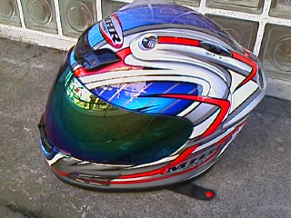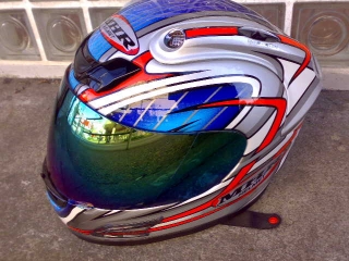 撮るモノが思い浮かばなかったのと、『X02NK』がお出かけ間際だったので、手近にあった色鮮やか(単に派手:笑)なヘルメットを撮りました。