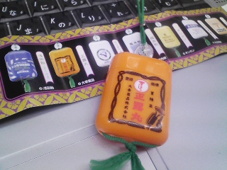 買うときは気にしていなかったのですが、『うちのおくすり 印籠マスコット』という商品名の通り、実在する有名売薬のデザインになっていて、眺めているだけでも、なんだかイイ感じです(笑)。