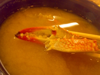 お味噌汁には、カニ。アサリの口の切れ端があったので、その出汁も利いているんですね。