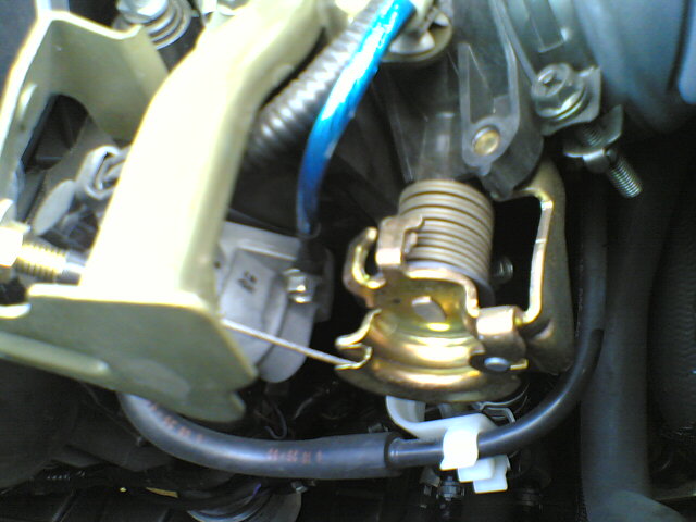 一番初めの既存アースからの一本を、右側にあるスロットル部分のボルトへと繋ぎます。右側はココのみで、バッテリーへ戻しました。
