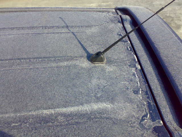 フロントガラスは、前が見えないくらいに積もっていました。でも、息でフーーーっと吹いてやると、サーーーっと飛ぶくらいに軽いものでした。