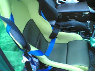 シートはレカロ! 色は当然“緑色”(笑)!! そしてバケットに身体を入れると、、、「気持ちイイ!」(笑)。