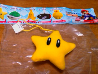 『マリオカートWii ふわふわマスコット』から「スーパースター」が出てきました。星のとんがっている所が、クリスタルケースのレンズ部分の切り抜きにちょうど良さそうです(嬉)。