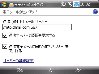 すでに入力をしてあるSMTPの設定に、「:587」と加えるだけでいいそうです。