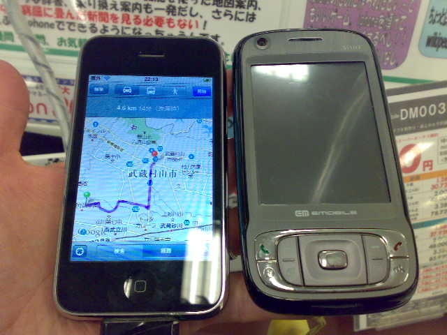 厚みが薄い分、『iPhone 3G』の方がコンパクトに感じられます。この薄さはイイですね。 当然、液晶画面は大きく、キレイ。