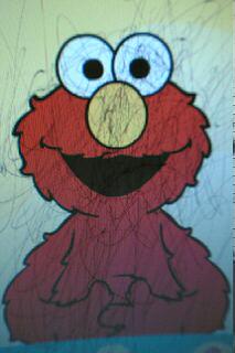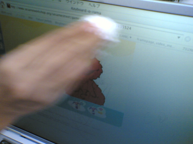 三歳児、おとなしく画面の中のエルモと遊んでいます。でも、何だか今日のエルモの描写(クリックで拡大)は粗い。「モザイクでもかかってるのかな?」‥‥「!!!」