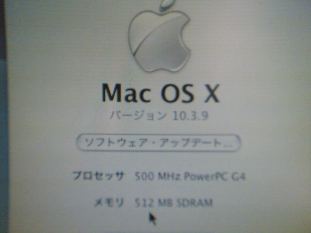 最終確認として、アップルメニューの「このMacについて」で搭載メモリを確認します、、、「512MB」きちんと認識してくれました(喜)。