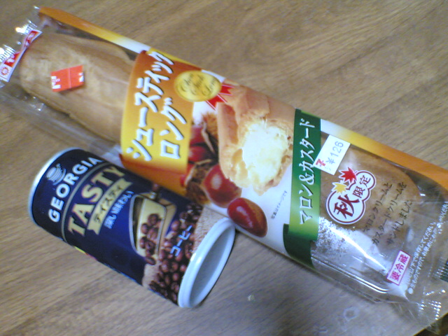 まずはエネルギー補給です(笑)。ヤマザキの『シュースティック ロング』と、ジョージアの缶コーヒー『テイスティ』。いつの間に復刻されていたのでしょう?