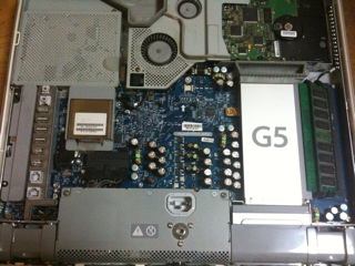 ドライバー一本、三箇所のネジを緩めるだけで開けられるiMac G5。メモリ増設くらいしかする事はありませんが、簡単な事はイイ事ですね。